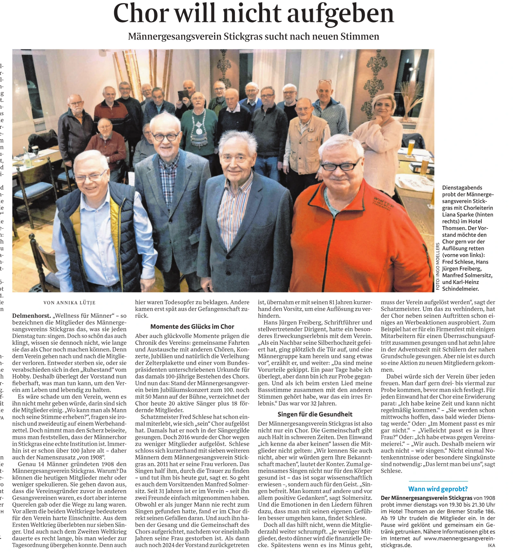 Interessierte Männer jeden Alters können gern unverbindlich die Proben auch unangemeldet besuchen!